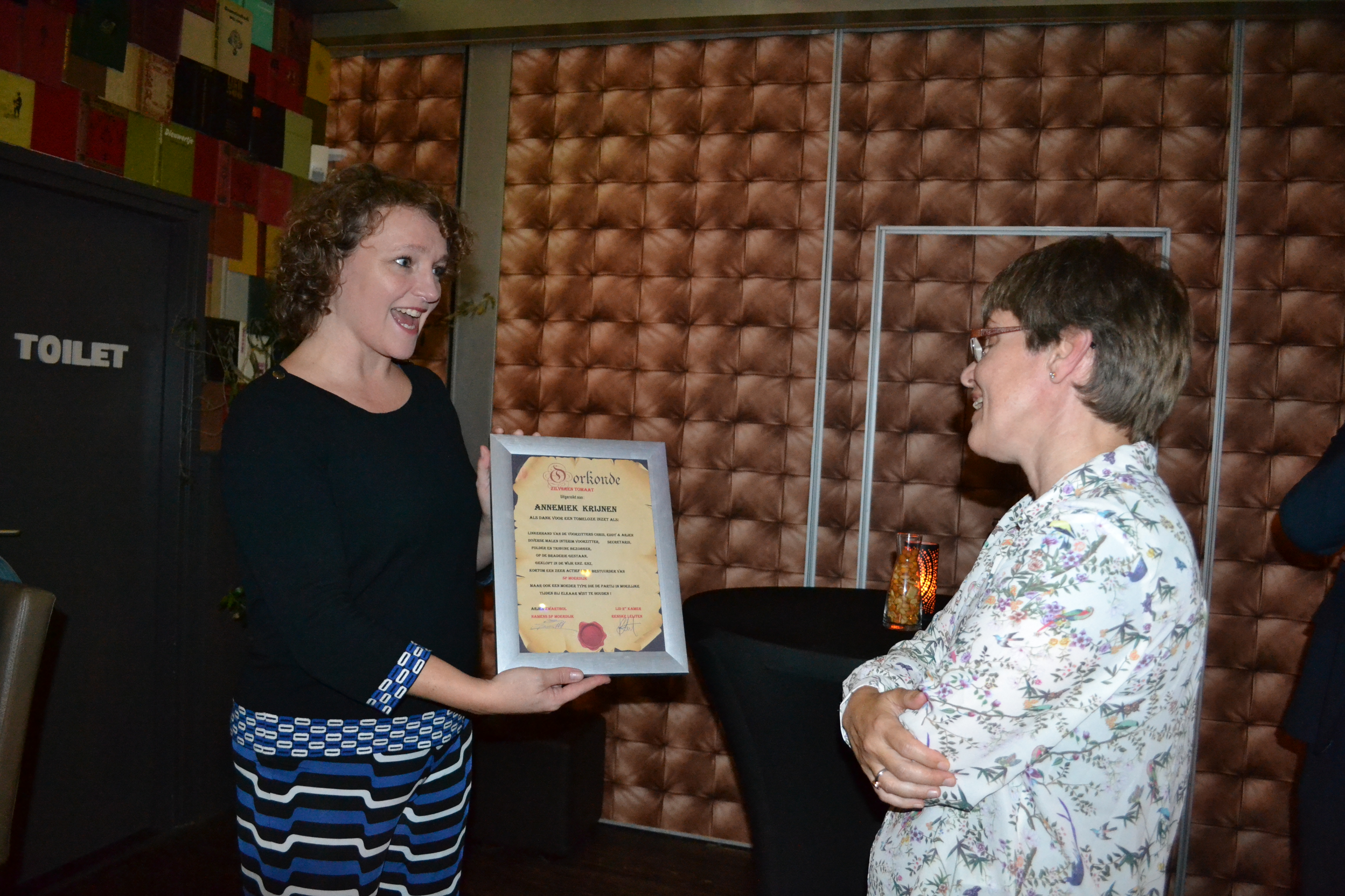 Op vrijdagavond 26 oktober j.l. hield de SP-afdeling Moerdijk een receptie in restaurant Tumi’s aan de Zuidhaven in Zevenbergen voor het afscheid van voorzitter en secretaris Annemiek Krijnen. Een feestelijk afscheid wat een complete verrassing was voor Annemiek. Voor haar 13-jarige inzet voor de...